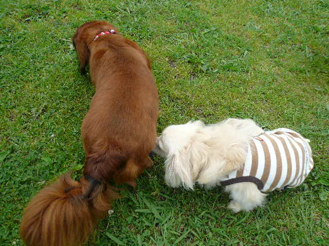 自分よりおっきいダックスちゃんに自分からクンクン(珍し)