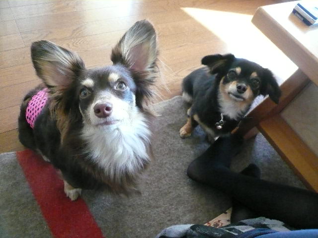 ビーズ作りの前に、会ったばかりで興奮してはしゃぐワンズを・・・