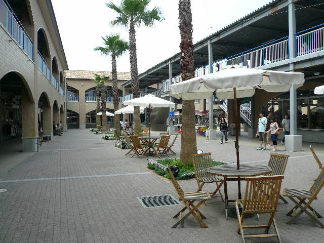 お昼を食べてしばらくすると、アウトレットのすぐ隣に海の家がずらーっと並んだような