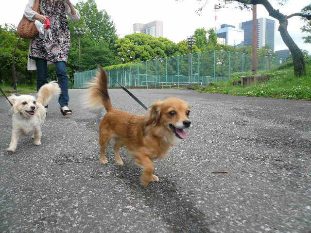 少し早く到着したので、日比谷公園でワンズを散歩させる