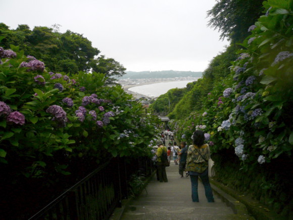 紫陽花越しに由比ガ浜の海が見えて、景色はとってもキレイでした