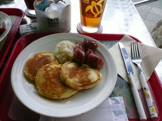 まだモーニングの時間だったので、ドリンク付きのソーセージとパンケーキの