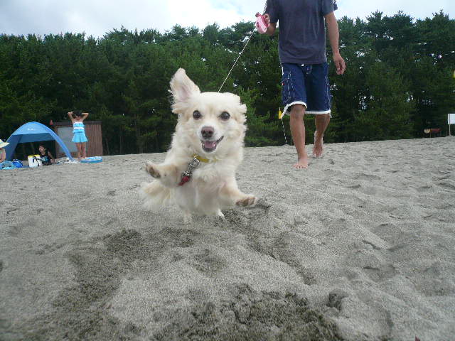 久しぶりの海遊びでモモもテンション