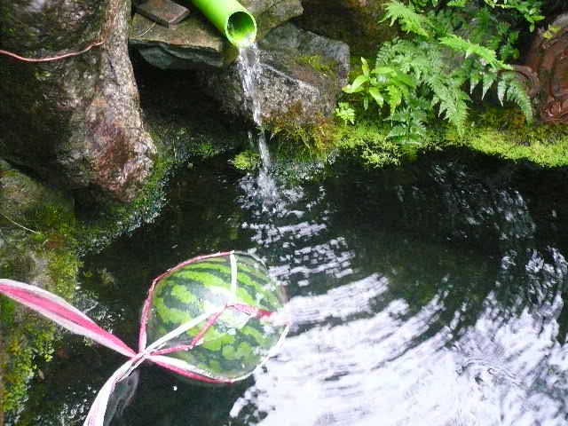 庭の池で冷やしたスイカ