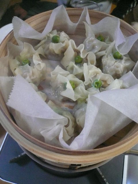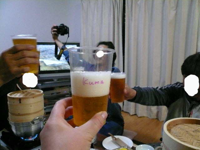 (集合写真は飲む前が鉄則ねw)いち早くラブ家に到着したpugっち&pink夫婦がシューマイ包みを