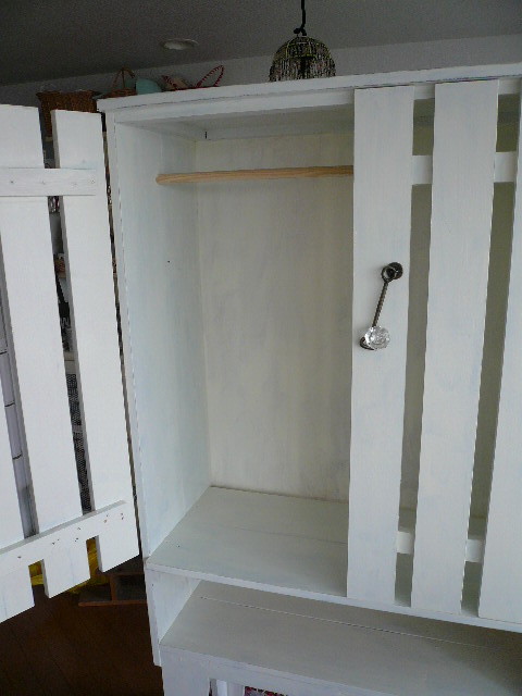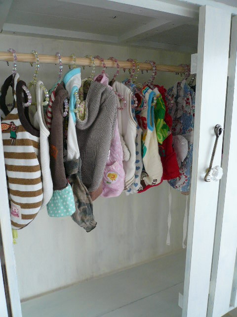 ガラスノブとアオリ止めを付けたよさっそく服をかけてみる