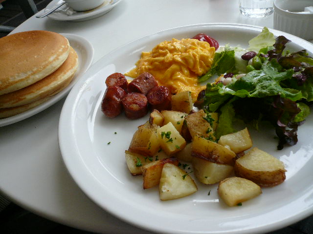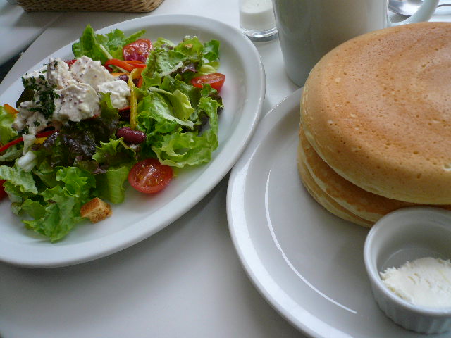 ランチはいろいろなセットがあって、パンケーキが3枚付きます