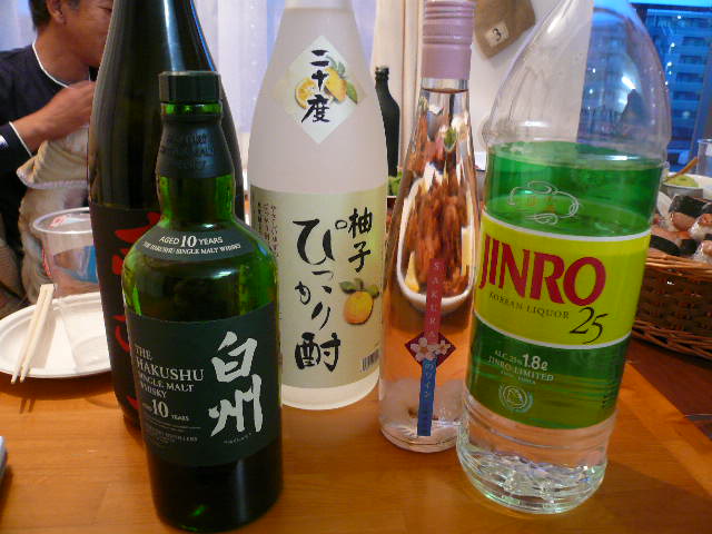 それぞれが持ち寄ったお酒達がいっぱい笑