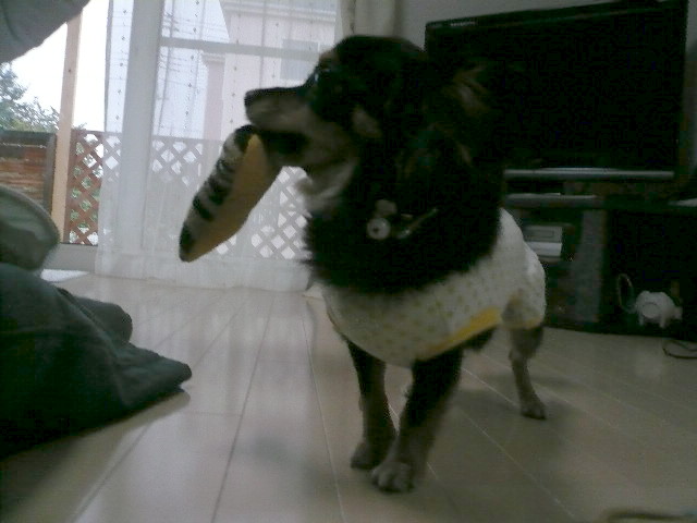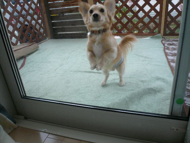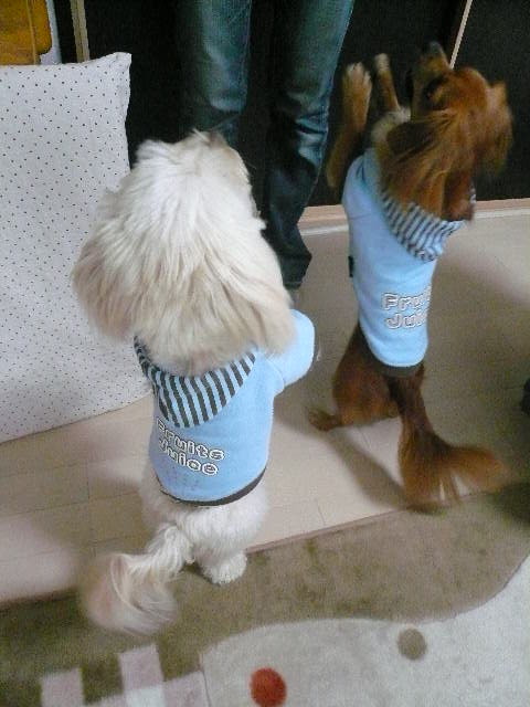 モモは謎のおできが出来たのでこの日は珍しくパパとお留守番です